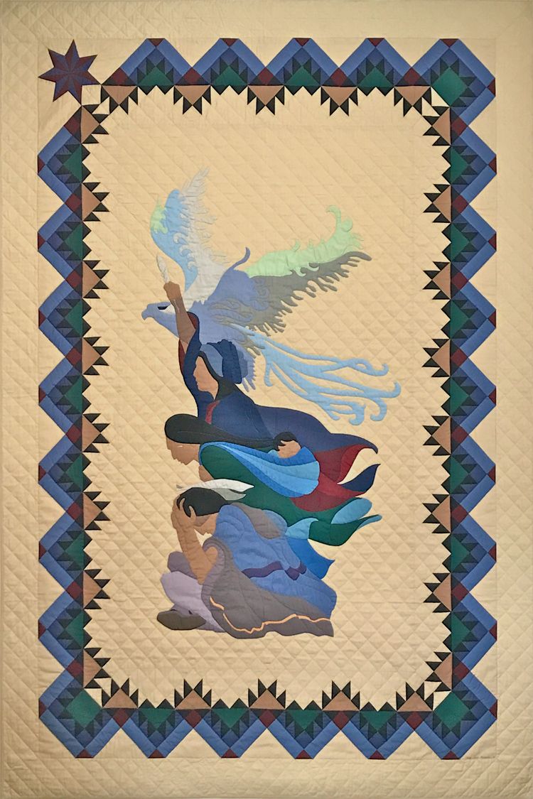 Wolf Edmonds was inspired by the story of the Cherokee people who in 1838-39 were forcibly removed from their lands by the Federal government, resulting in the deaths of more than 4,000 Cherokee. Figures represented are Chief Sequoyah, a woman and child epitomizing the persistence required to survive, a male figure representing the despair of the journey, and a phoenix at the top to symbolize hope for the future.