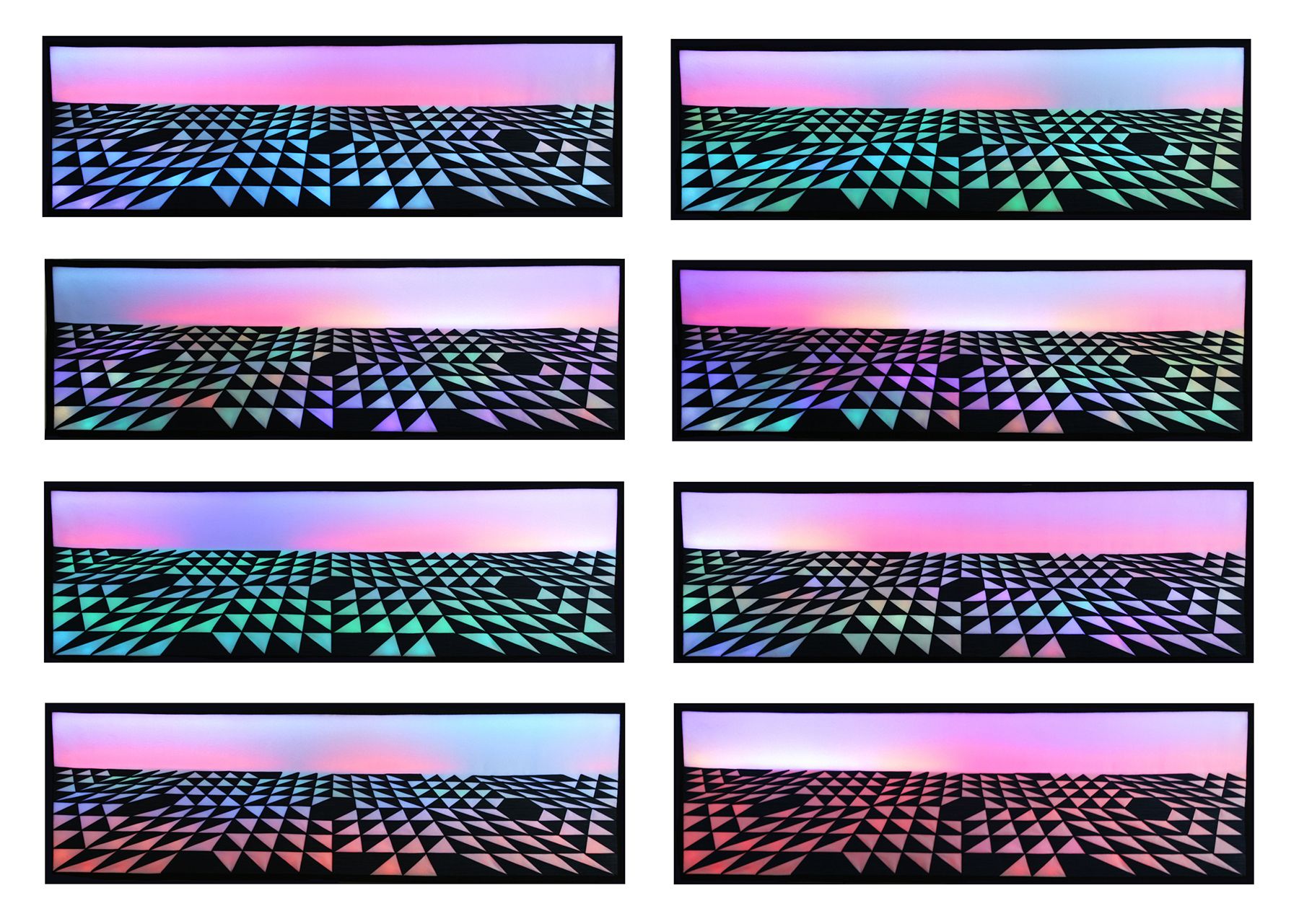 Lefelhocz is known for using unconventional materials and conceptual cross-referencing in his artwork, often incorporating a grid-like structure. Although this quilt embraces traditional quilt making, Lefelhocz maintains his outsider approach by giving viewers a light show.