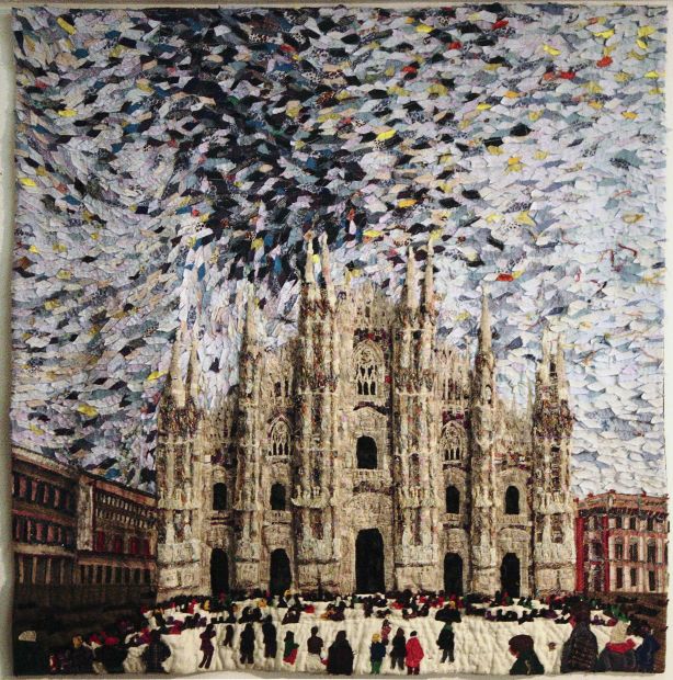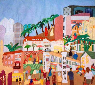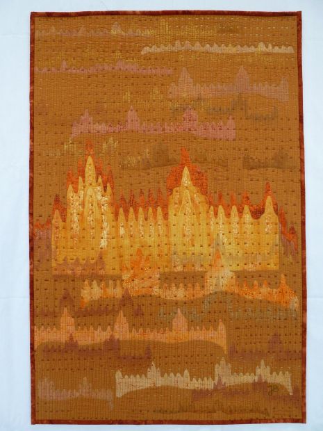 I thought of postcards as I searched through the gallery images. Whether they represent real or imagined places, these quilts invite me to go in search of new views--or perhaps new points of view. I chose them for the emotions I think their creators may have experienced as they brought them to life, emotions I equate with traveling to new places. And of course, all travels include thankfulness for a safe arrival home.