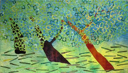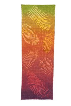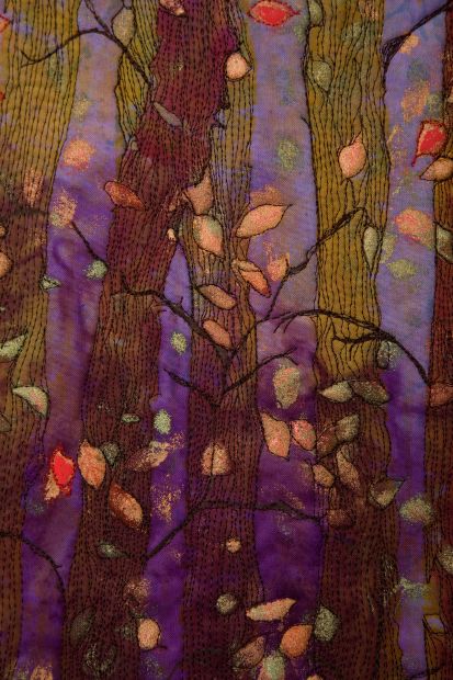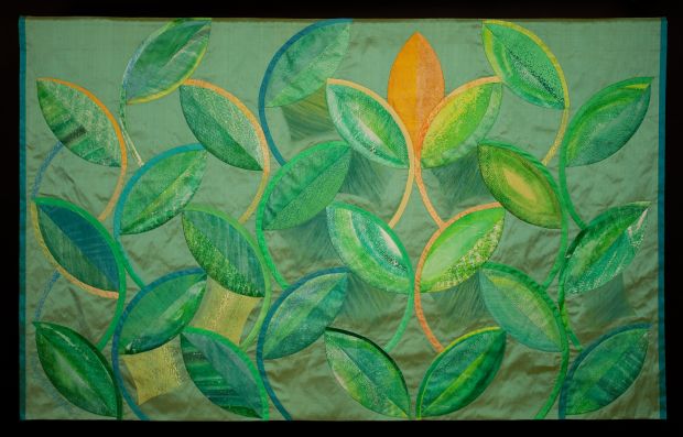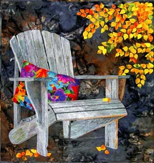 There is something about leaves that draws artists to capture them in paint and fabric. Perhaps it's the riot of color on an autumn day in New England. Line that expresses dynamism and flow. Varying textures to be explored and savored. Shapes that intrigue and resonate. Leaves work powerful magic; they can lead us into the forest, encourage us to look up in wonder, or provide the backdrop for a chair that invites us to sit awhile and contemplate their fleeting beauty and the fragility of life.