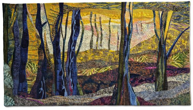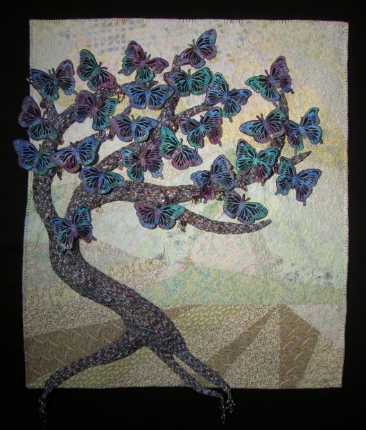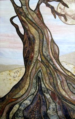 The Art Quilts I have chosen all have a common theme of trees. Some have beautiful leaves, green or turning to fall colors. Some are barren or in their last stages of evolution. They all contribute to our life on earth.