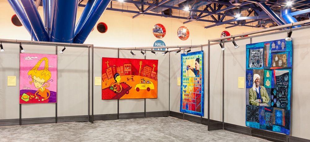 This exhibition celebrates the expressiveness of thehuman face. The diverse designs focus on a variety of both emotional states and the ways in which people interact: contemplation, joy, community, work and play. Based on the companion book, Art Quilt Portfolio: People and Portraits, the exhibition shows two works by each of the book's 20 Featured Artists.