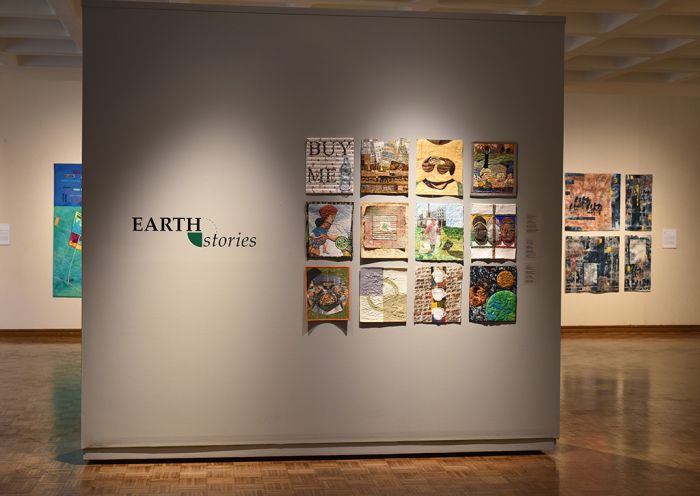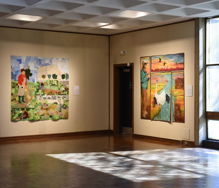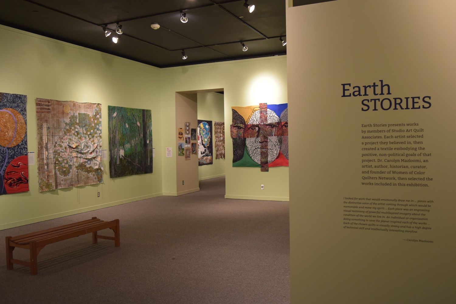 Twenty-four artists from around the world were chosen to interpret a "story" of their choice, in two quilts each (72x72 and 12x14 inches). The views presented by the artist do not necessarily reflect the views or opinions of SAQA or MSU, neither of which endorses any person, project or organization.