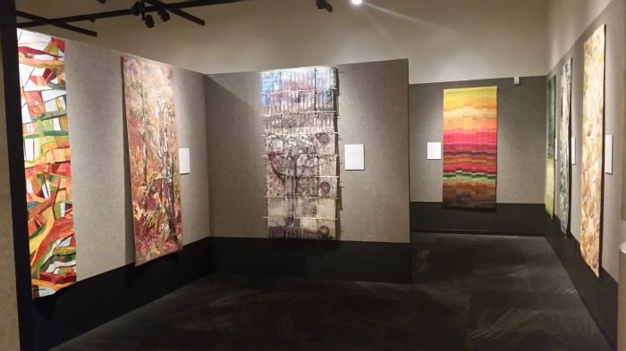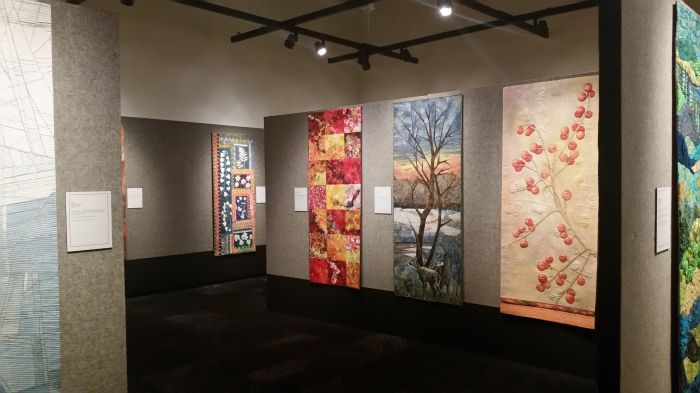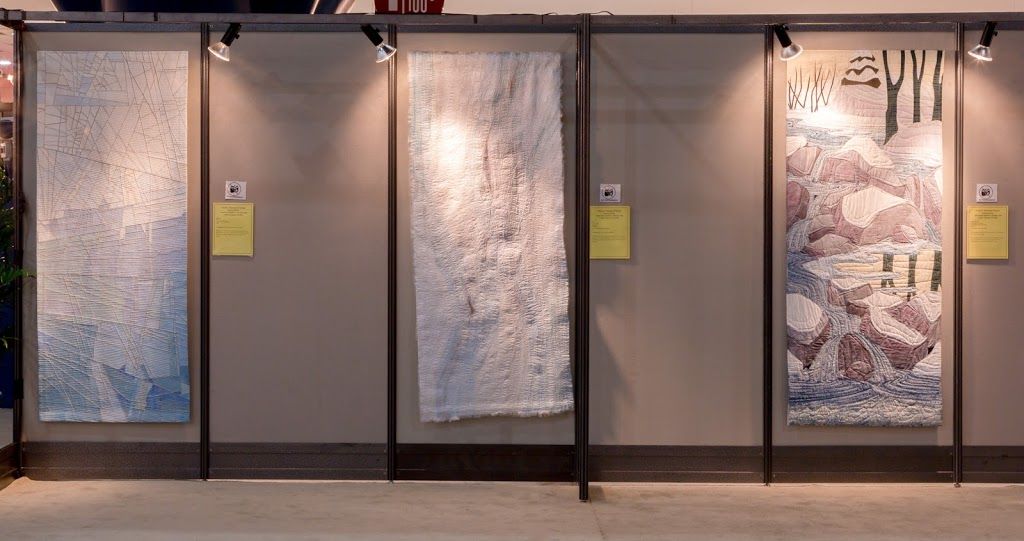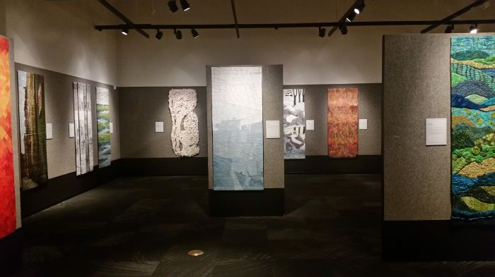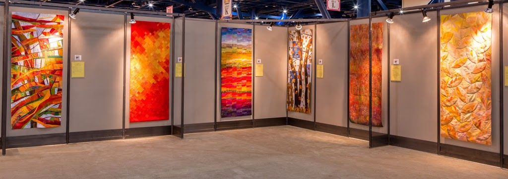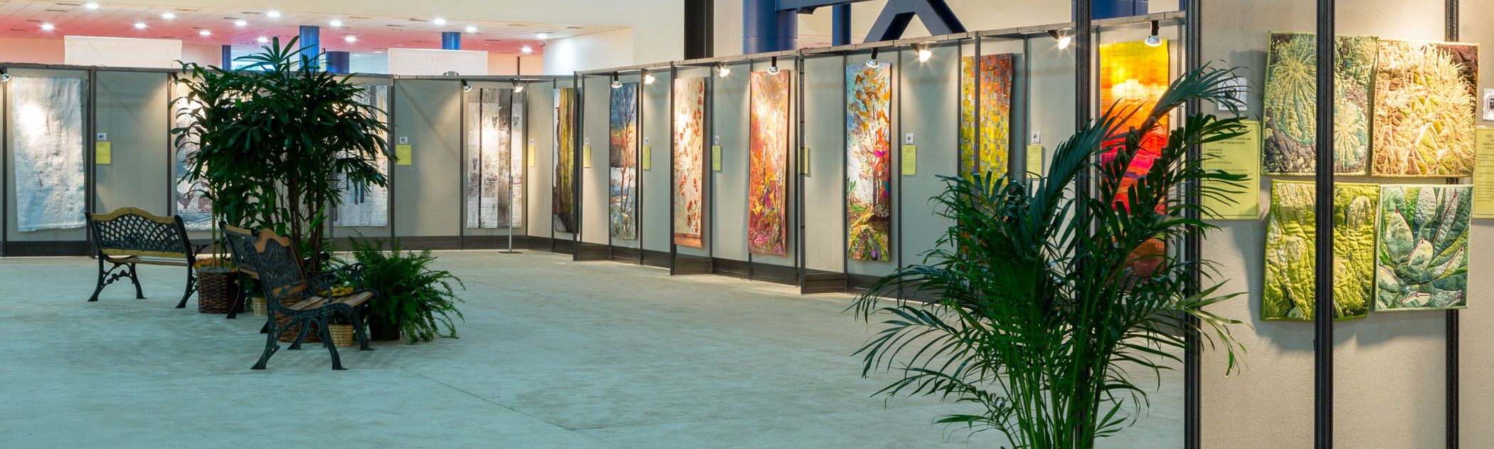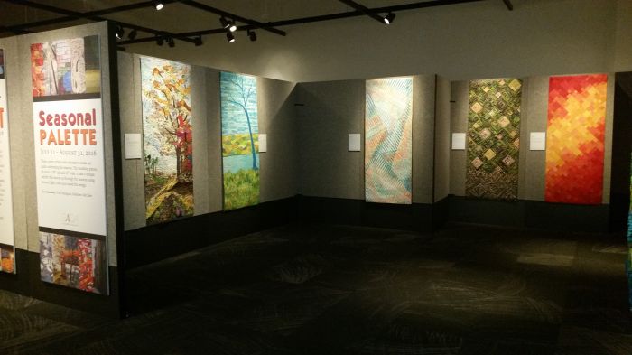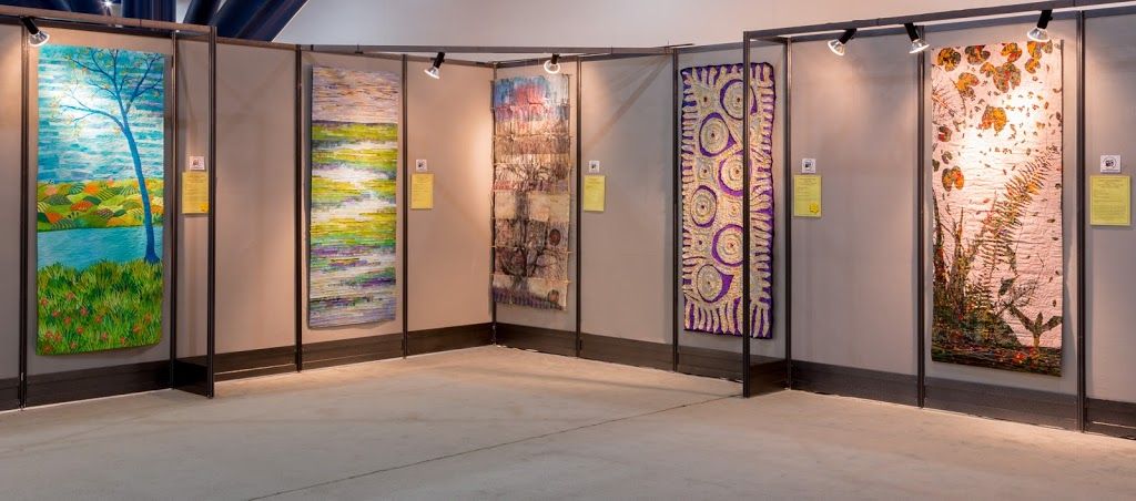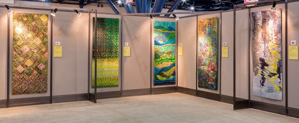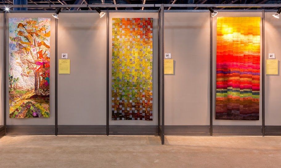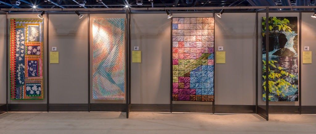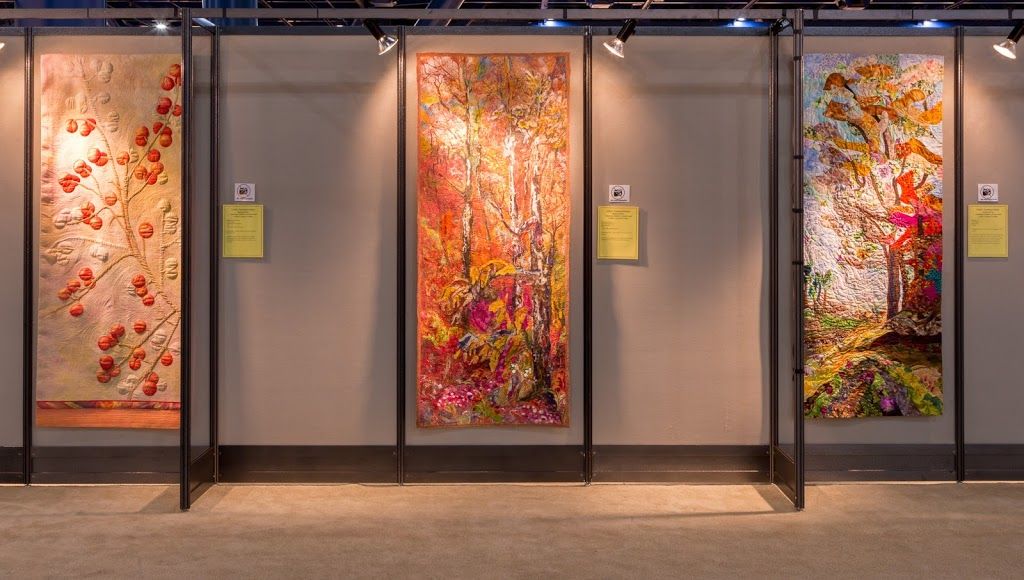 Thirty-seven artists were selected to create art quilts celebrating the seasons. The resulting pieces, all sized at 78” tall and 32” wide, create a unique exhibit that moves us through the seasons using texture, light, color and masterful design.